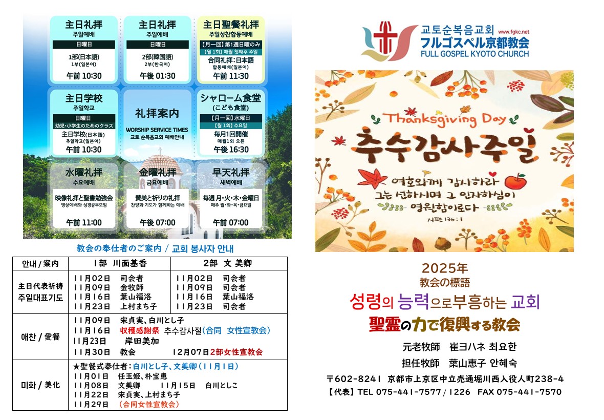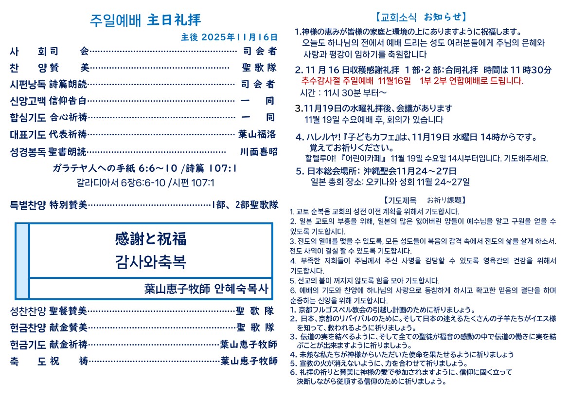 2025年11月16日の主日礼拝